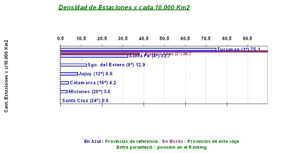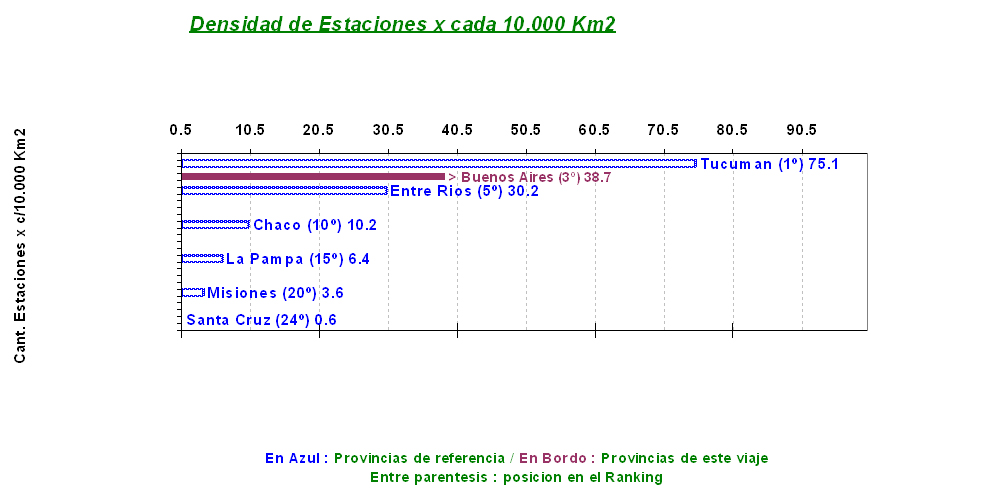 Por otra parte, haciendo un análisis comparativo de los 24 distritos (Provincias) que componen el territorio Argentino, en los años de apogeo de la Red Ferroviaria Argentina (inicios de la década de 1960) la densidad de estaciones x cada 10.000 Km2 arroja este grafico: